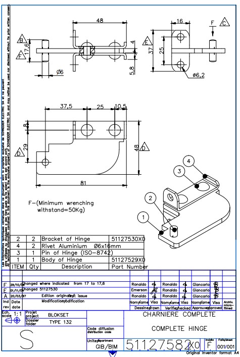 Bản lề giữa 51127582X0 thường dùng cho cửa tủ điện công nghiệp, đặc biệt là các hệ tủ Blockset Schneider.